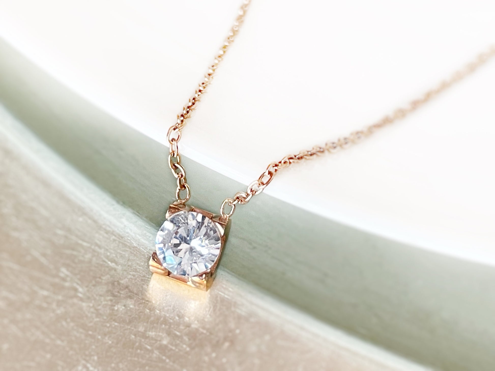White sapphire solitaire necklace. This beautiful 1 ct lab created white sapphire necklace is a barely-there necklace casted in 18K rose gold filled and 14K yellow gold. It is made of the high quality materials. Perfect Valentine’s Day gift for someone special, or self love!
